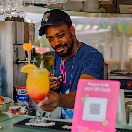 Promoção de cashback: descontos exclusivos (50% em caipirinha, 20% em drinks e 5% de cashback) nos quiosques parceiros.
